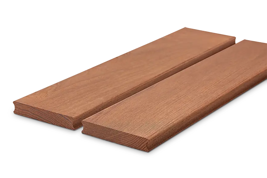 Die charakteristische warme Farbgebung der Thermo Esche kombiniert mit der erhöhten Widerstandsfähigkeit des behandelten Holzes schafft eine stilvolle und langlebige Lösung für Ihre Terrasse.